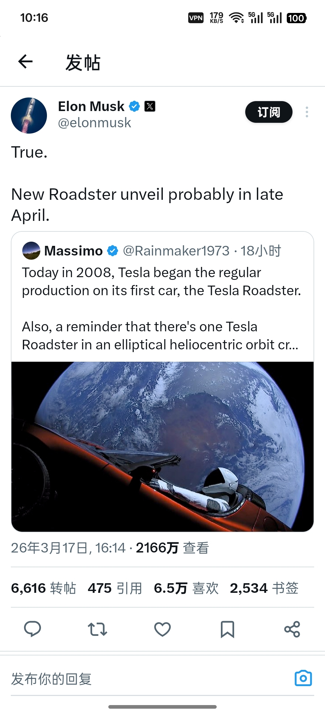 3月17日,特斯拉CEO马斯克在X平台宣布,超跑车型Roadster预计4月下旬发布。